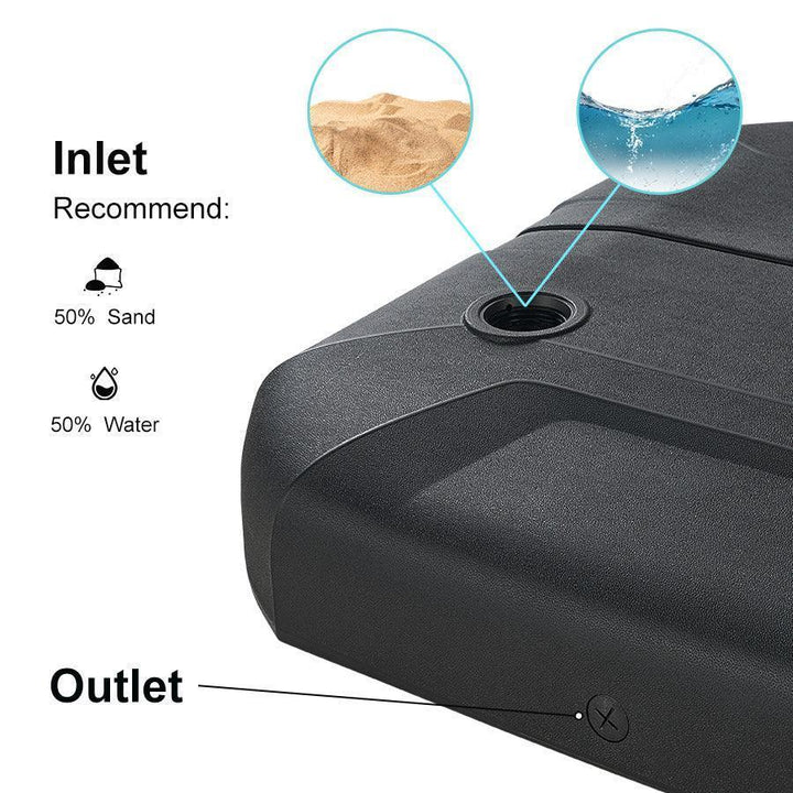 [ High Weight Capacity ] We recommend fill it with 50% sand and 50% water, total weight is about 330 lbs with fully injected. To ensures that your patio umbrella remains stable even during heavy winds.