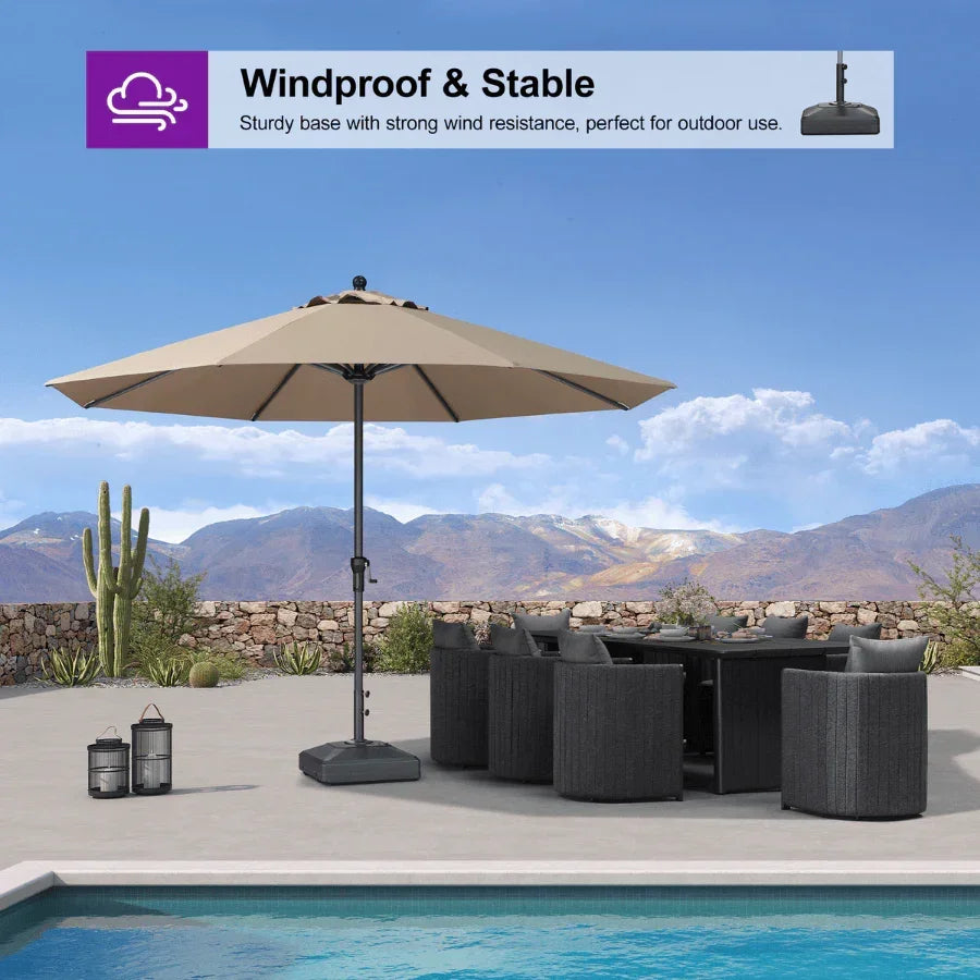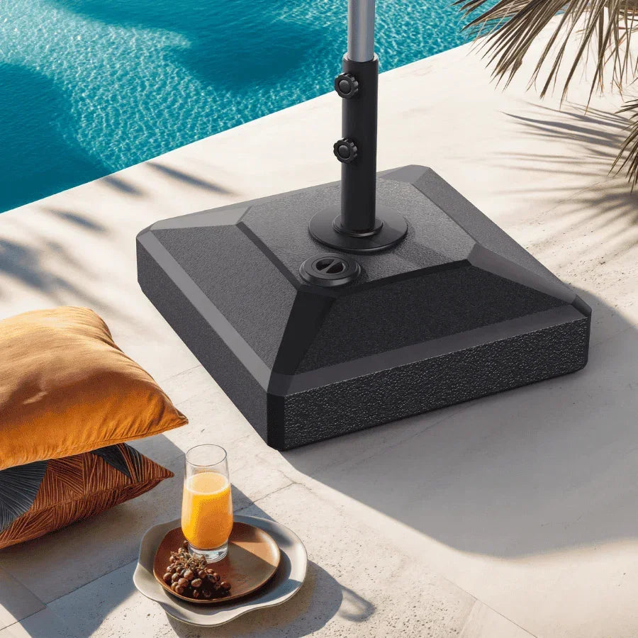 [ Large Capacity Fillable Base ] The umbrella stand can be weighed down with up to 96 lbs water. We recommend fill it with 154 lbs water-sand mixture.