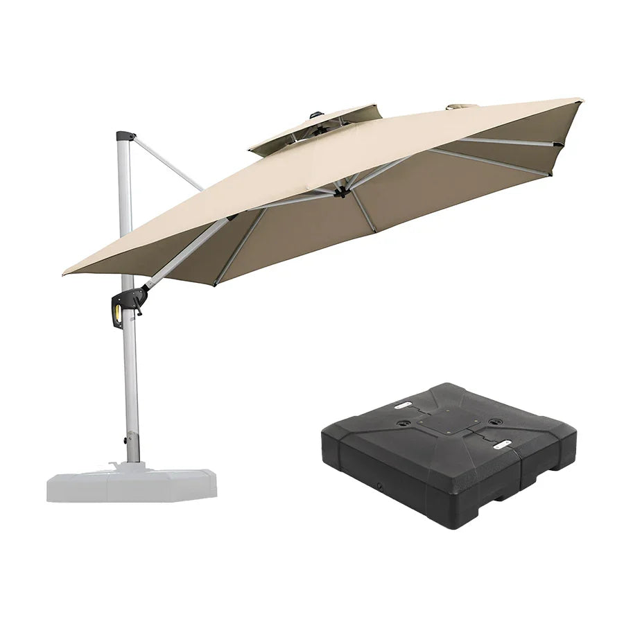 [ Umbrella with Base Set ]PURPLE LEAF Double Top 360 Degree Rotation Square Patio Classic Umbrella with Base
