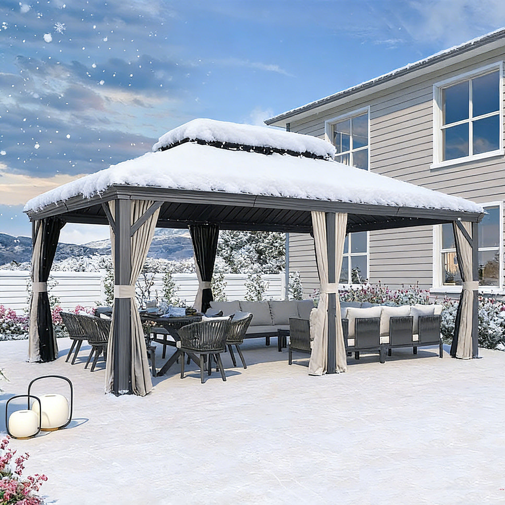 This is a stylish and sturdy outdoor patio gazebo. It features a simple design that offers a large shade and gives efficient large protection from bright light, sun's rays and harsh heat. PURPLE LEAF hardtop gazebo gives you a spot to enjoy your garden come rain or shine. It will become a permanent addition to your outdoor space, ideal for entertaining or simply relaxing alone or with family. Outdoor gazebo is the perfect enhancement for your outdoor activities. enhancement for your outdoor activities.