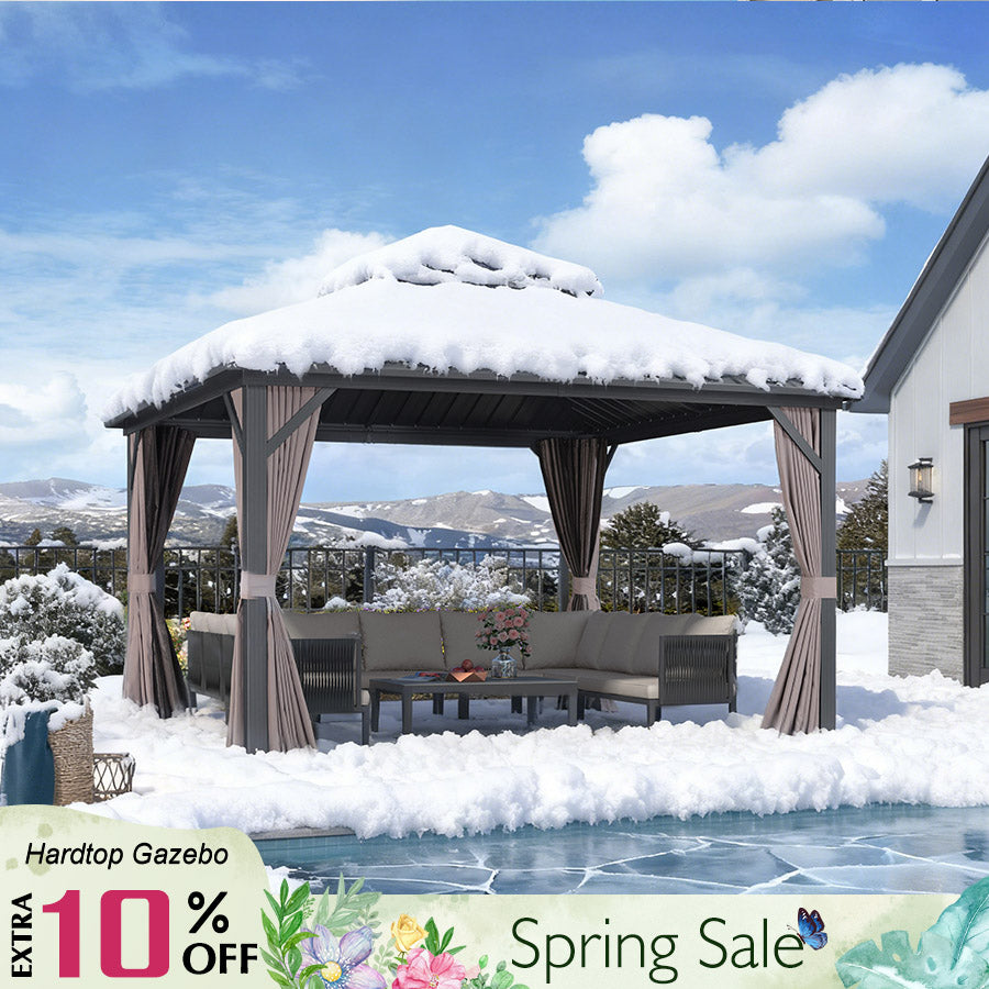 - [ Powder-coated Aluminum Frame ] Hardtop gazebo is constructed with a sturdy and lightweight aluminum framework, providing exceptional strength and durability. Make sure the gazebo is suitable for long-term outdoor use.