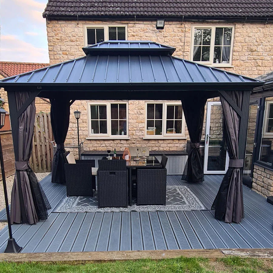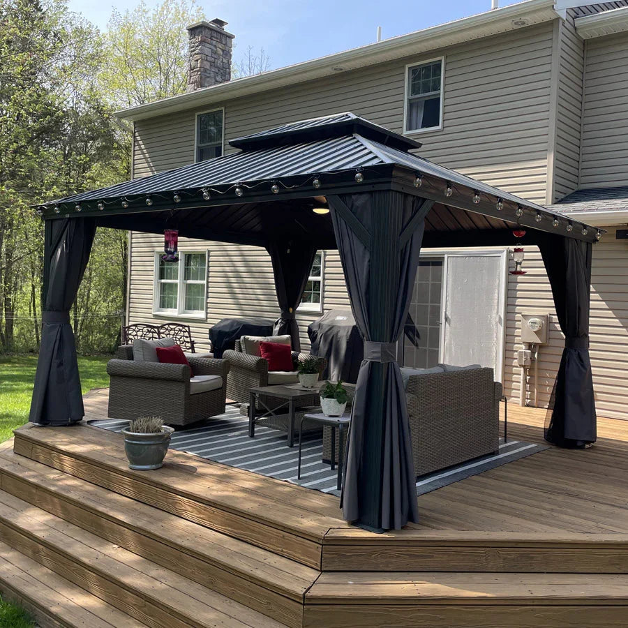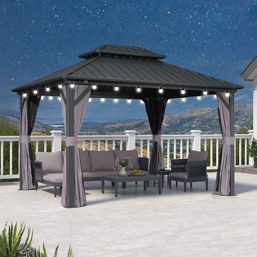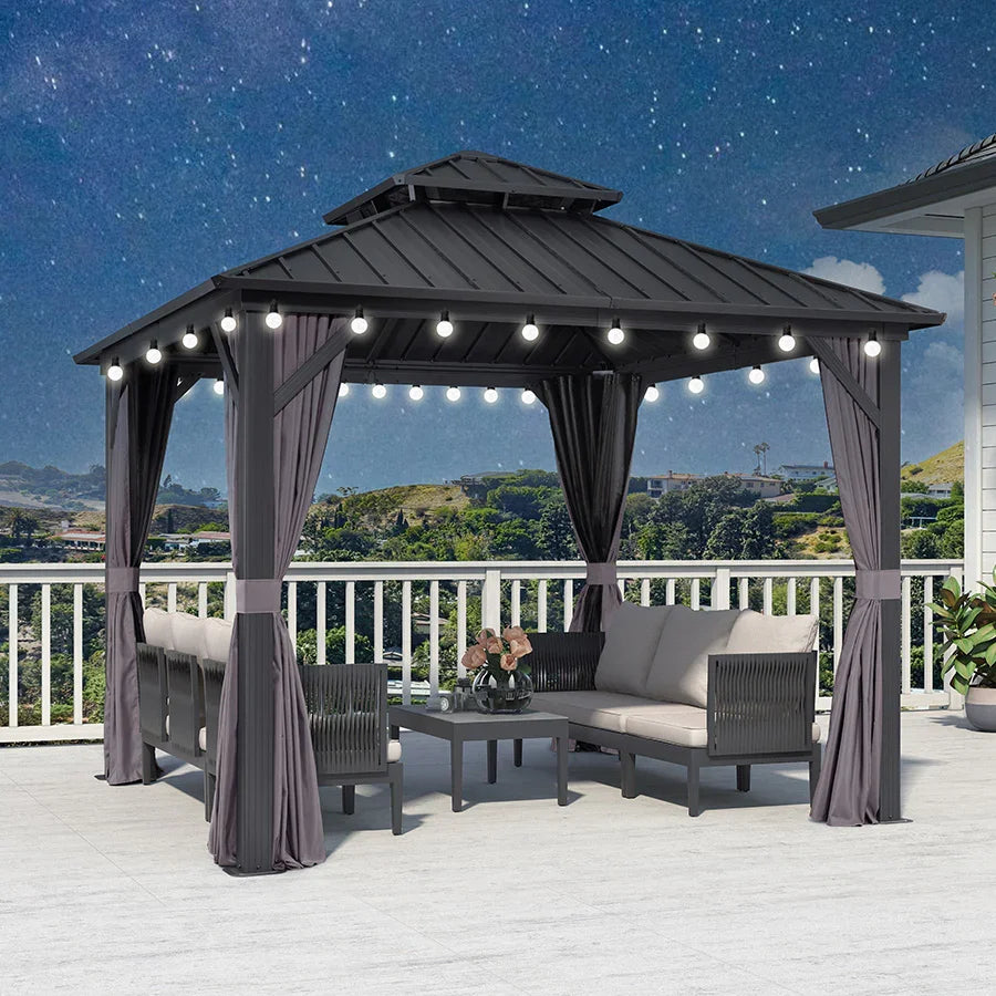 - 【Powder-coated Aluminum Frame】Hardtop gazebo is constructed with a sturdy and lightweight aluminum framework, providing exceptional strength and durability. Make sure the gazebo is suitable for long-term outdoor use.
