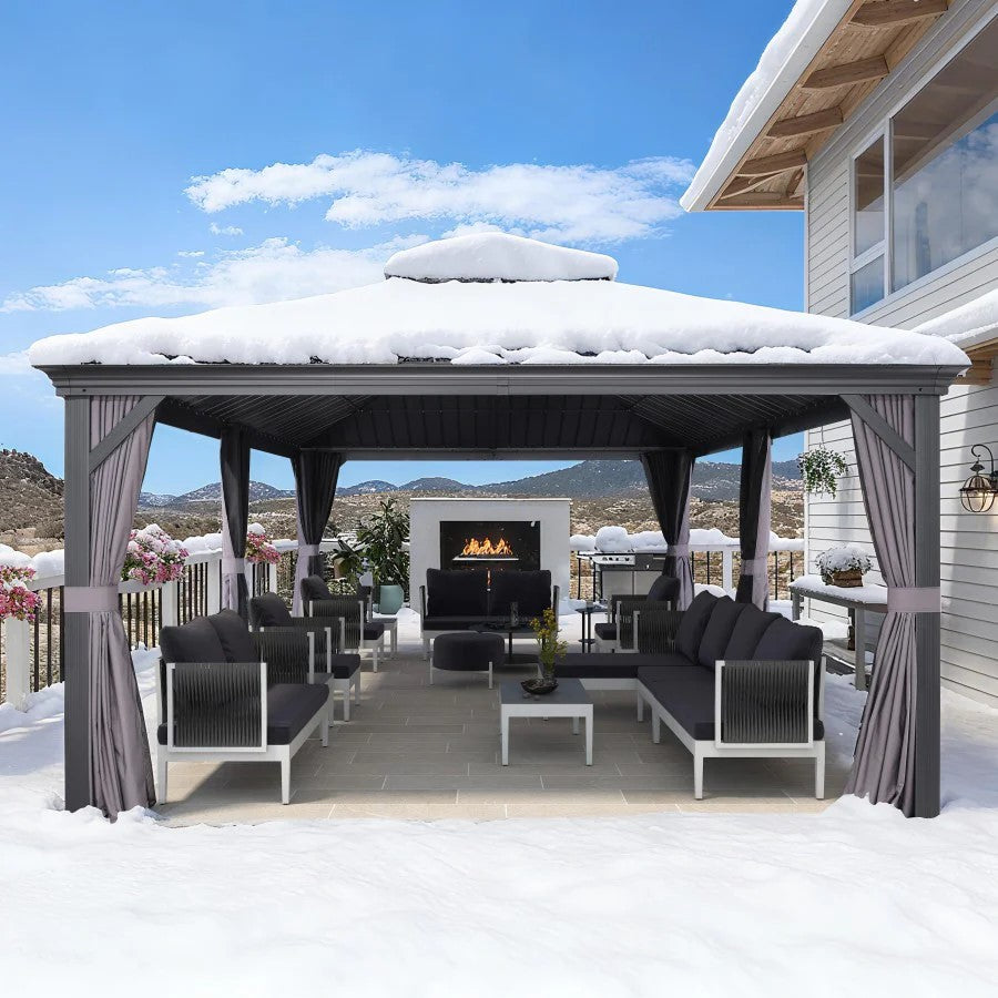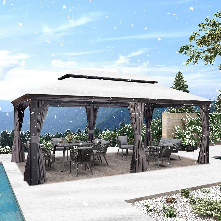 This is a stylish and sturdy outdoor patio gazebo. It features a simple design that offers a large shade and gives efficient large protection from bright light, sun's rays and harsh heat. PURPLE LEAF hardtop gazebo gives you a spot to enjoy your garden come rain or shine. It will become a permanent addition to your outdoor space, ideal for entertaining or simply relaxing alone or with family. Outdoor gazebo is the perfect enhancement for your outdoor activities. enhancement for your outdoor activities.
