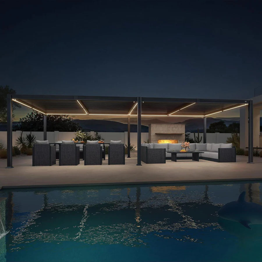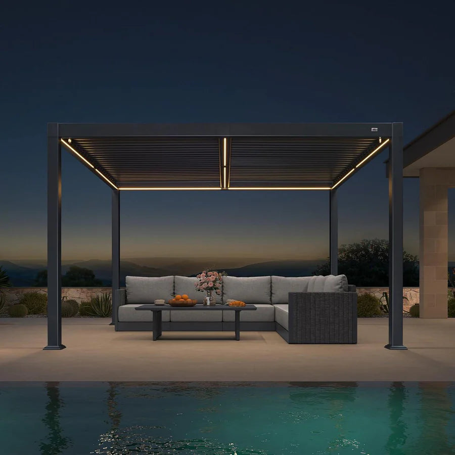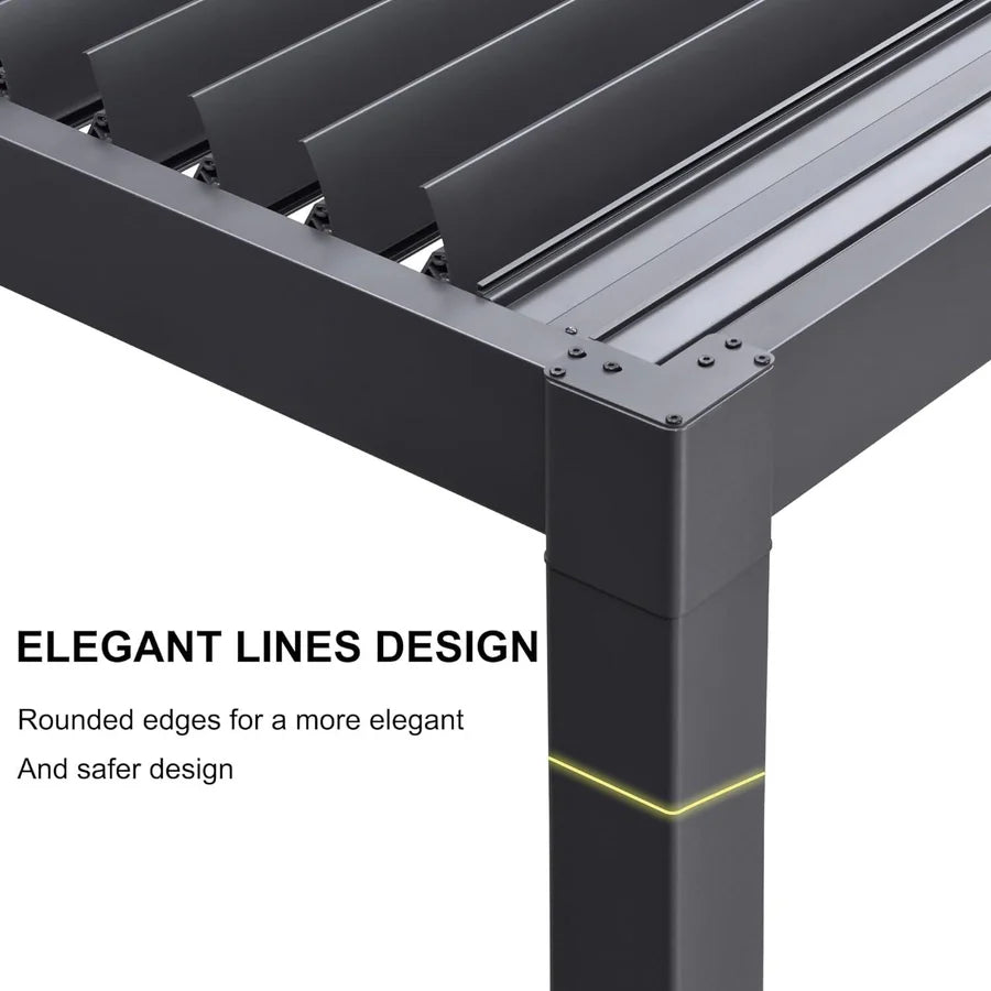 PURPLE LEAF Caesar Solar Louvered Pergola with LED Strip Lights and Control Panel Aluminum Outdoor Pergola with Adjustable Roof for Patio Deck Garden Yard Gray
