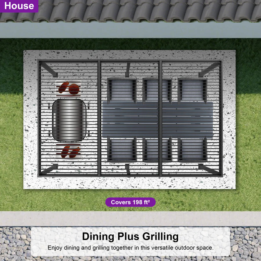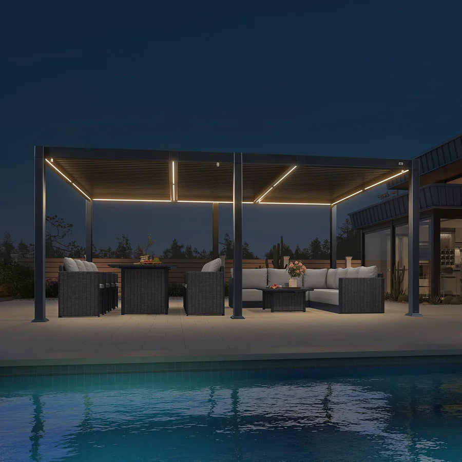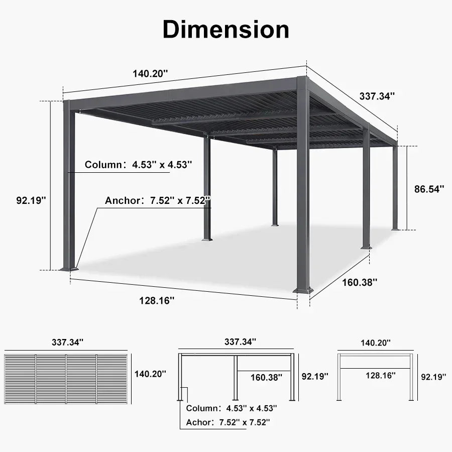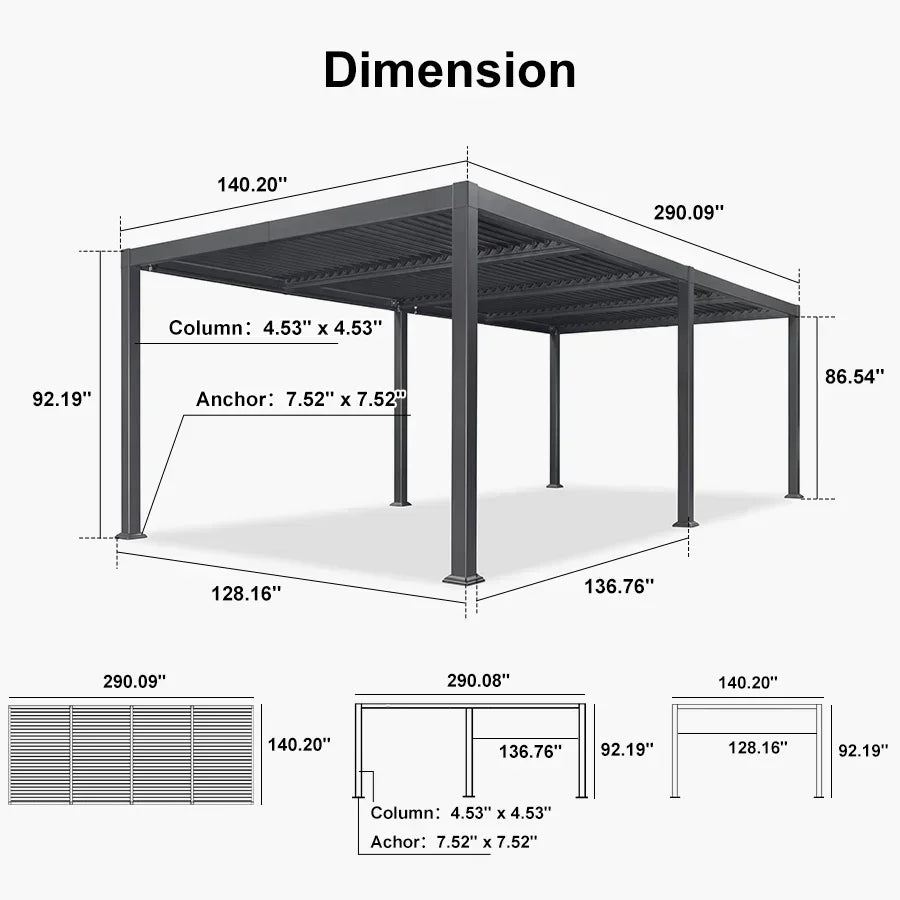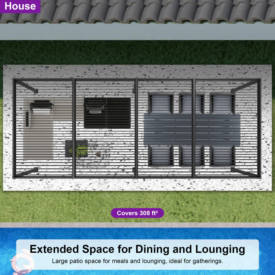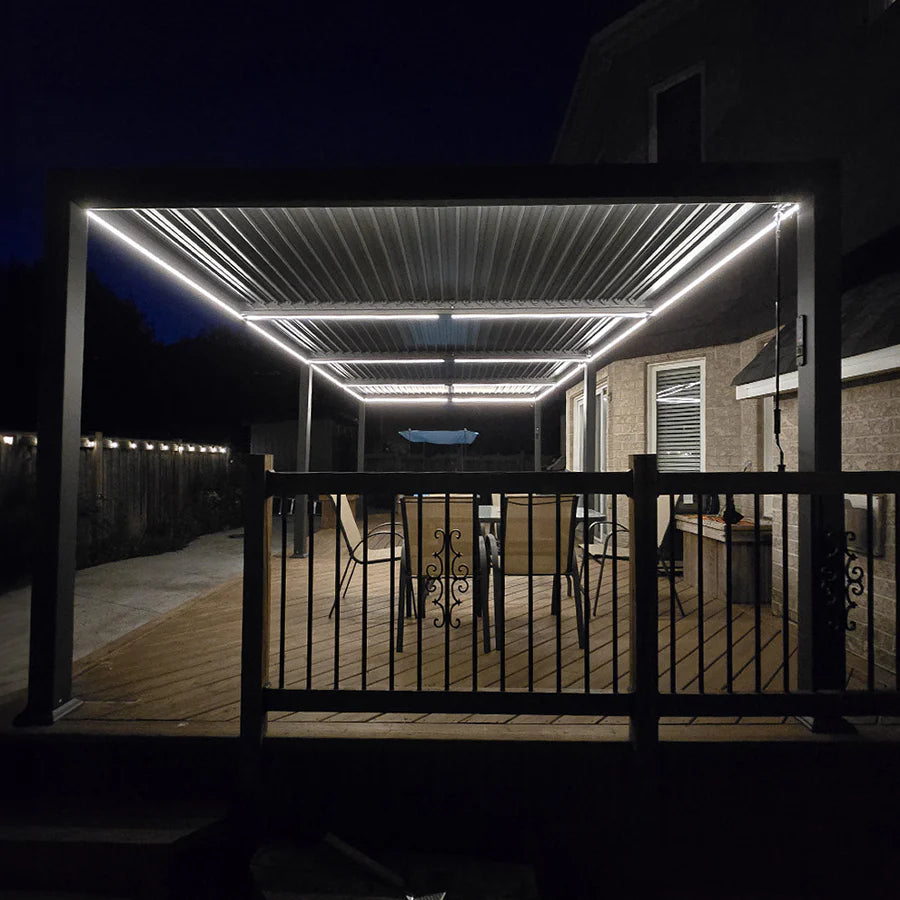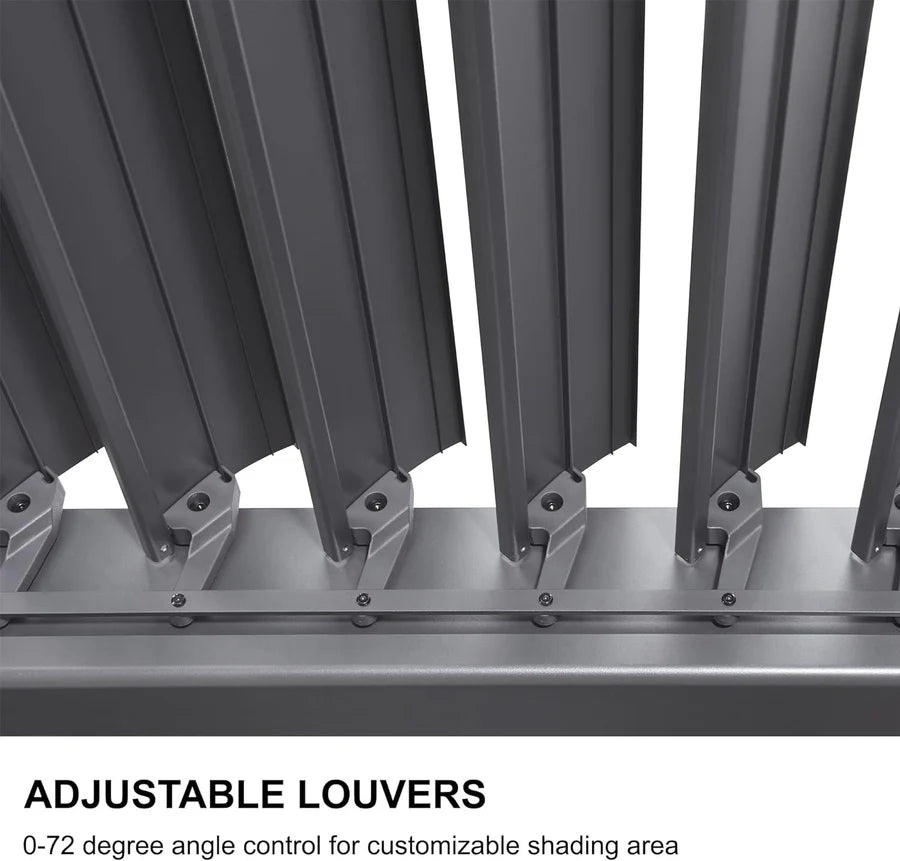 Independent Adjustable Roof: With two rows of individually controlled louvered roofs, you can enjoy up to 120-310 square feet of shade while still being able to bask in the sun or gaze at the stars with this patio pergola.
