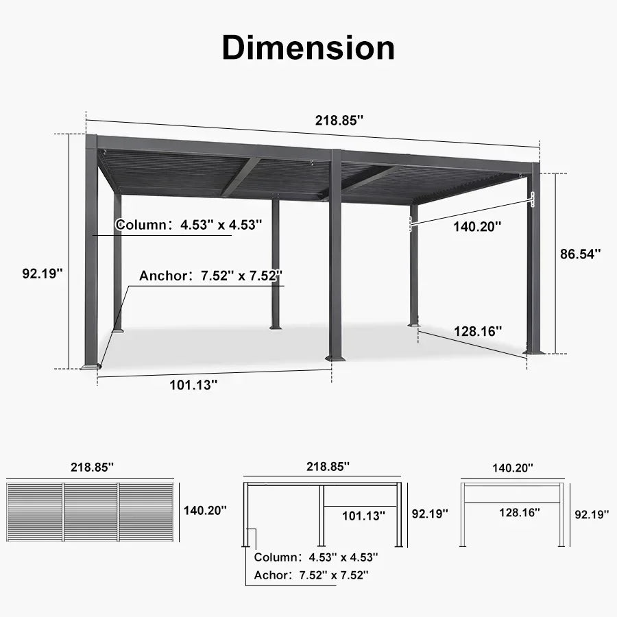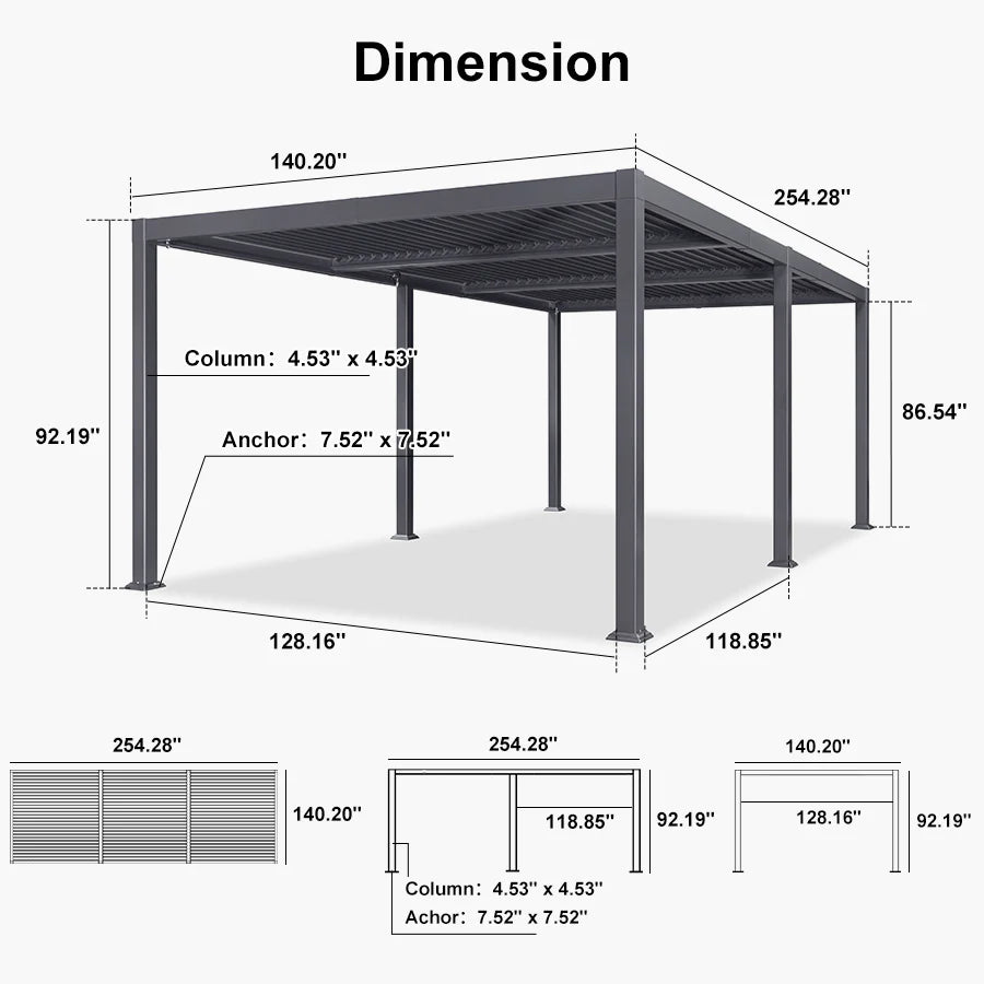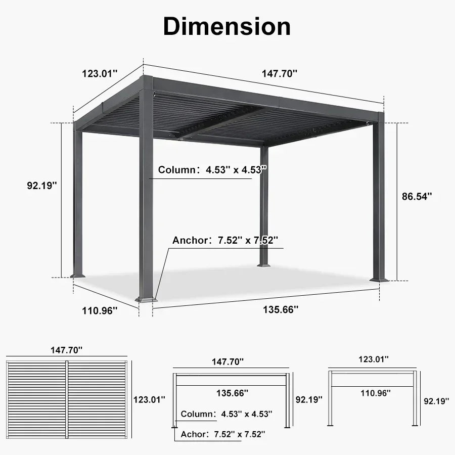 Full Aluminum Frames and Louvers:: Constructed with high-quality aluminum, the Purple Leaf pergola is built to withstand the test of time. With a weatherproof aluminum louvers, it create an optimal environment by shielding your outdoor space from heavy rain, snow, and other harsh elements.