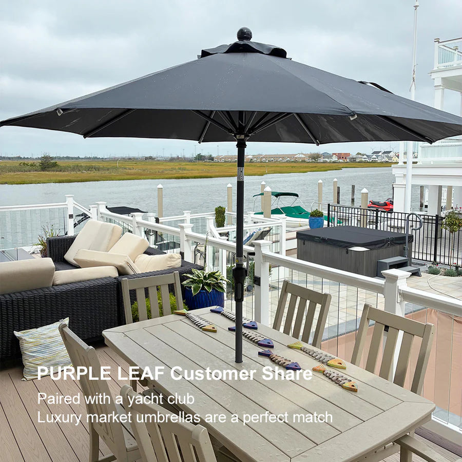 PURPLE LEAF Crank and Tilt Table Umbrella is a stylish and practical addition to any outdoor space. With its durable construction and high-quality fabric, this umbrella is designed to withstand the elements while providing essential UV protection and shade. The umbrella features a visible hand crank system for easy and convenient adjustment of both the tilt and crank mechanisms. This allows you to control the angle and position of the umbrella for optimal sun protection throughout the day. Perfect for outdoor dining, poolside lounging, or any other outdoor activity, the PURPLE LEAF umbrella is a versatile choice that enhances the comfort and ambiance of your patio or garden.