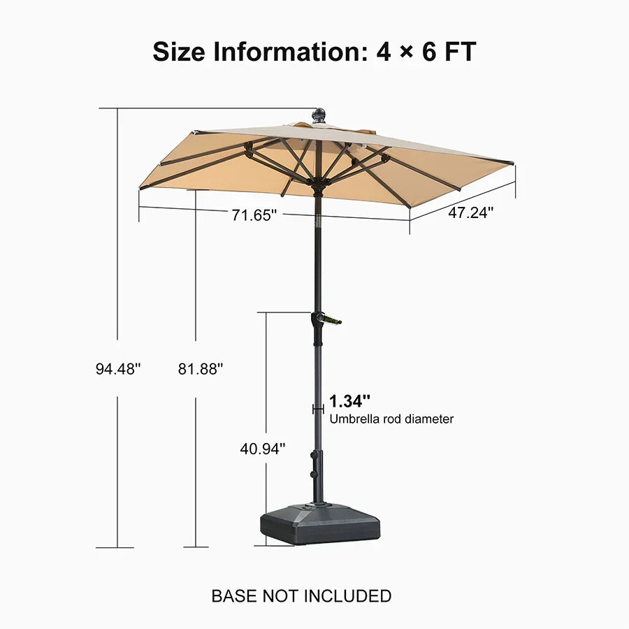 ● Noted: Weighted base in the picture is NOT included, 10' round, 6.5'X10'umbrella base: ZYCA03-MLBASE-45, 8'Round, 9'Round, 6'X6', 7'X7', 8'X8', 4'X6', 6'X9'umbrella base: ZYCA03-MLBASE-32, You can insert this club umbrella into the water, underground, or use other bases.