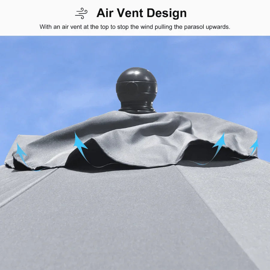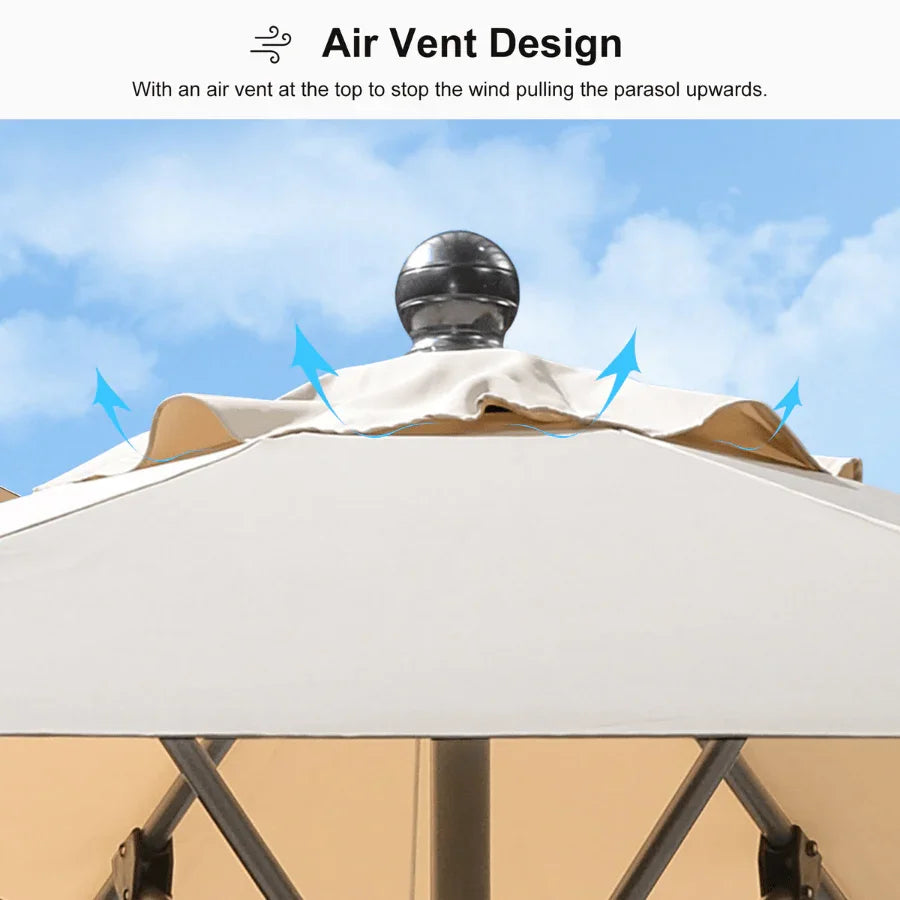 ● Hand crank system: This market umbrella features a hand crank system with a more beautiful cut-out design for quick opening and closing of the market umbrella.