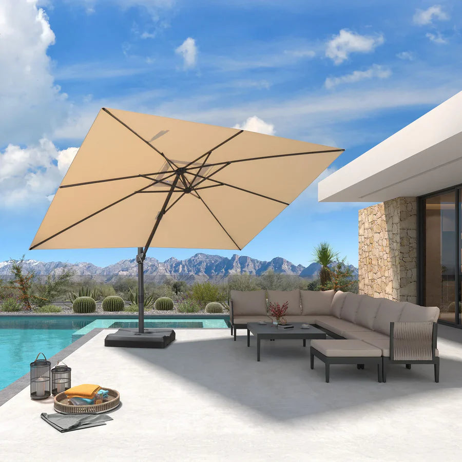 ● 360° Full-Rotation Design: Smoothly pivot the canopy to any direction with a gentle push, ensuring seamless sun coverage for lounging, dining, or poolside relaxation.