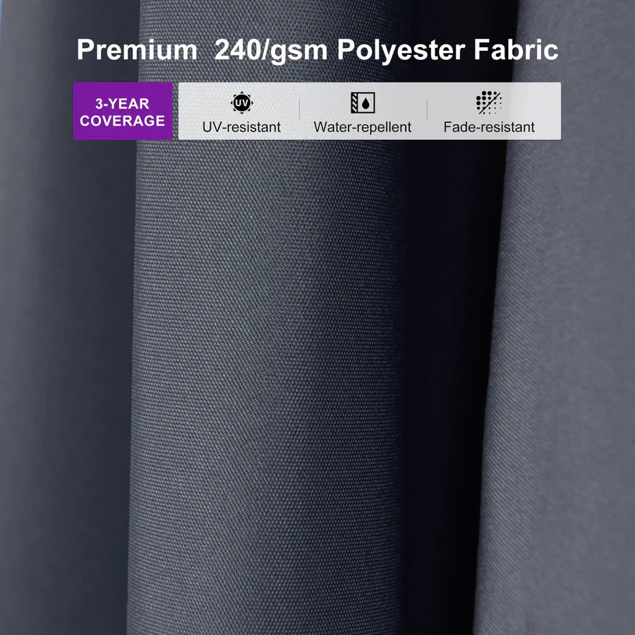 ● Performance Fabric: Crafted for endurance, our 240 GSM polyester blend blocks UV rays and features water-repellent. Engineered to resist fading (AATCC Level 4 Colorfastness) even under extreme weather conditions.