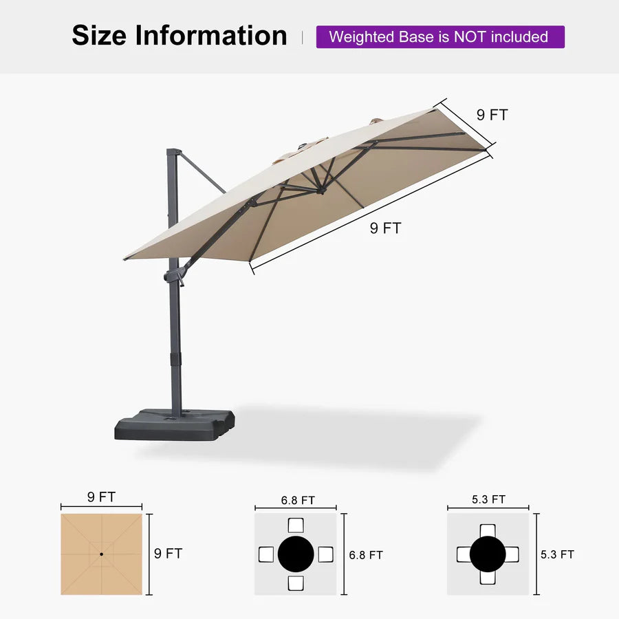 PURPLE LEAF Stepless Tilt Cantilever Umbrella Affordable Outdoor Patio Umbrella