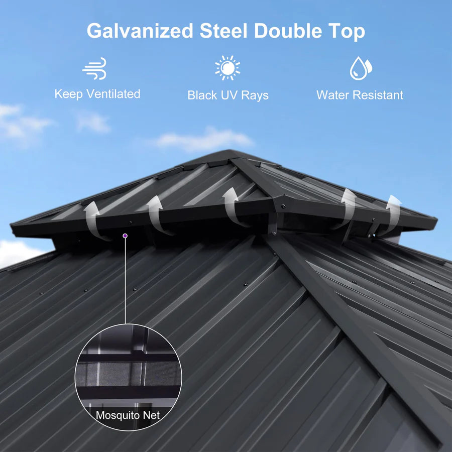 - 【Galvanized Steel Double Roof】The roof is double top vented for optimum airflow and comfort. Galvanized steel protects against harmful UV rays.