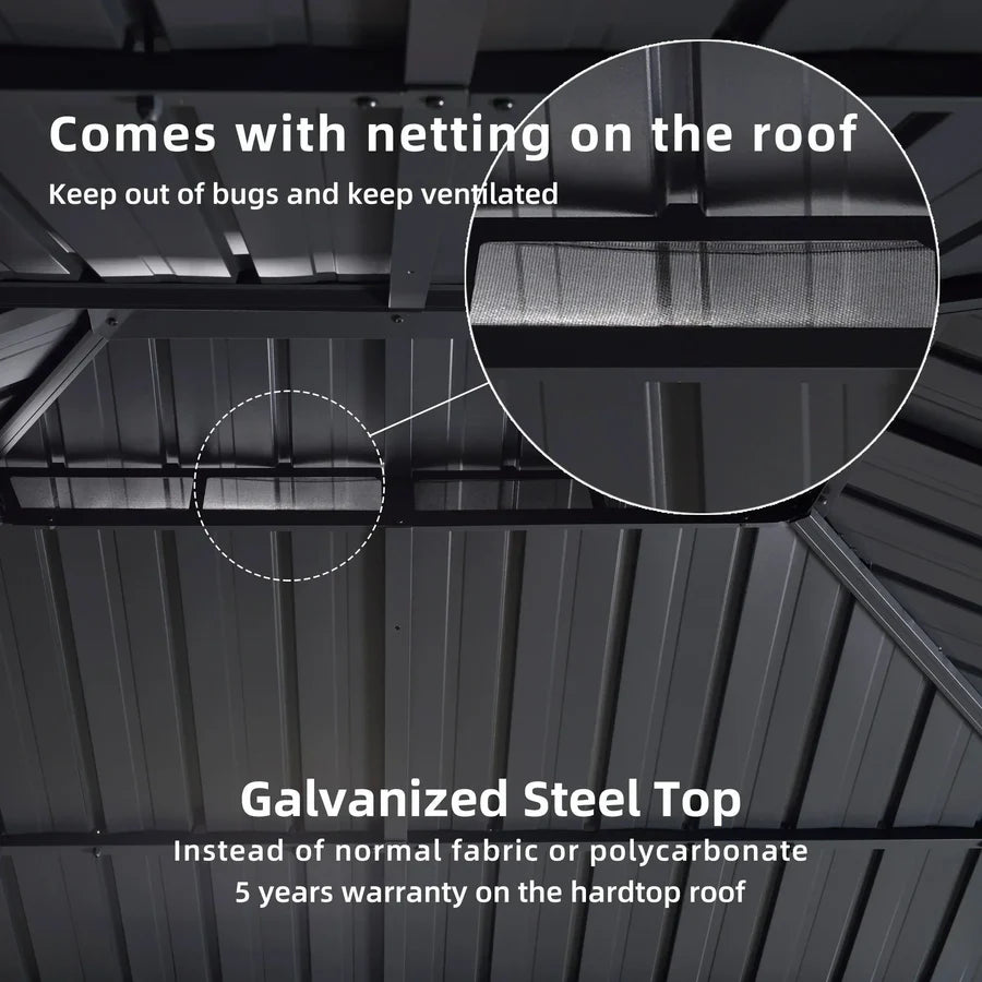- 【Valid Warranty】We offer limited time warranty against manufacturing defect for our product:5 years warranty on the hardtop roof, 2 years warranty on the curtain and netting, 1 year warranty on the frame constructions.