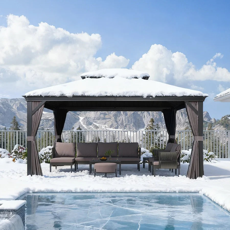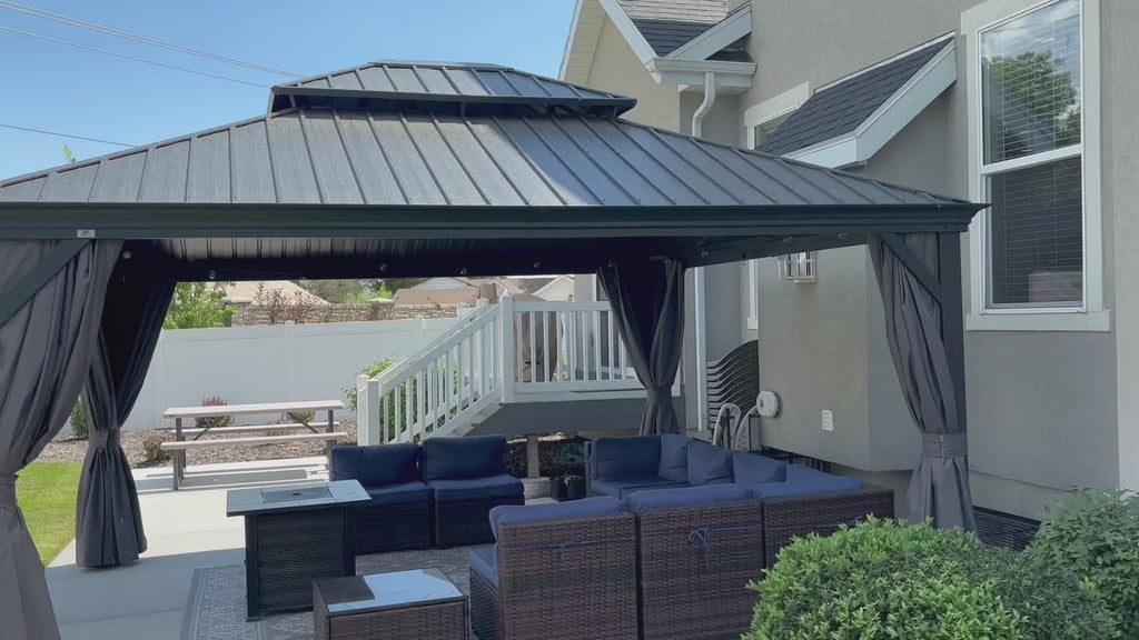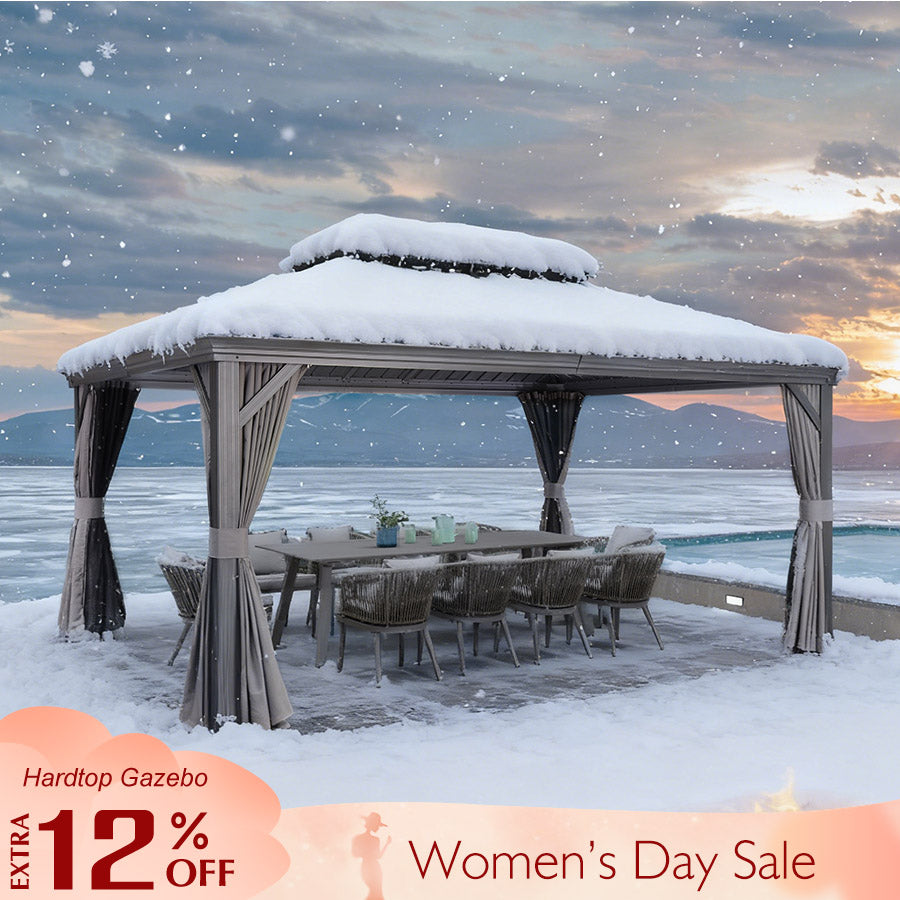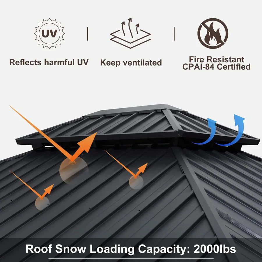 This is a stylish and sturdy outdoor patio gazebo. It features a simple design that offers a large shade and gives efficient large protection from bright light, sun's rays and harsh heat. PURPLE LEAF hardtop gazebo gives you a spot to enjoy your garden come rain or shine. It will become a permanent addition to your outdoor space, ideal for entertaining or simply relaxing alone or with family. Outdoor gazebo is the perfect enhancement for your outdoor activities. enhancement for your outdoor activities.